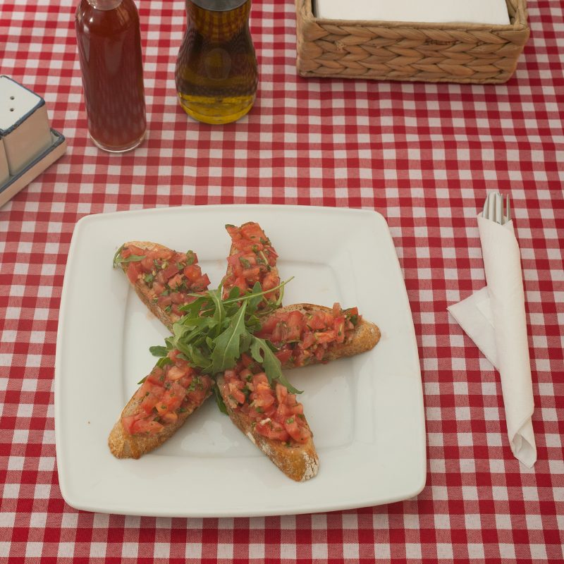Salsa di pomodoro, aglio, cipolla rossa, rucola