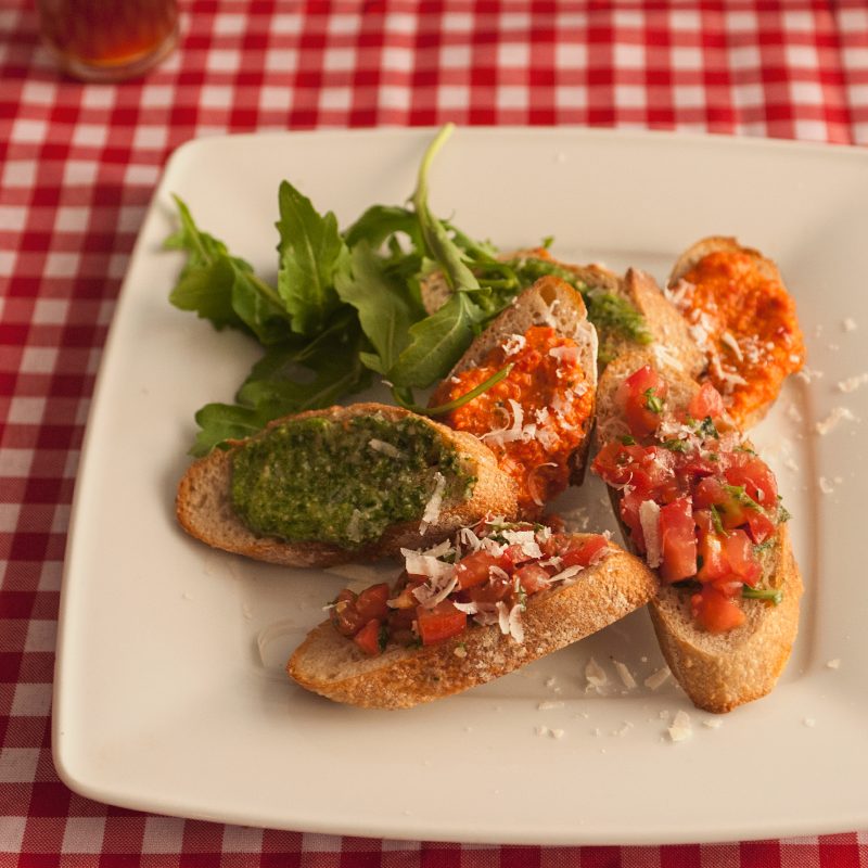 Scelta di: cipolla, olio d'oliva e rosmarino, melanzane, zucchine, peperone, spinaci, aglio, carciofi, funghi, pomodori, rucola, olive, capperi