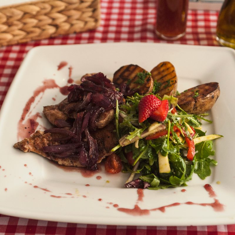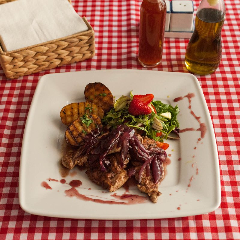 Filetto alla griglia con cipolla rossa e vino (180 gr.)